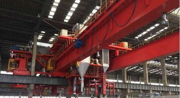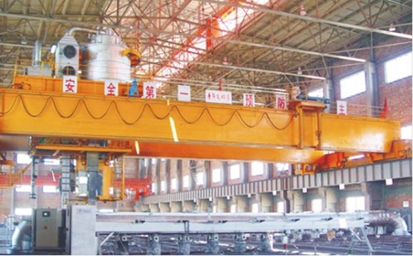 焙燒多功能起重機是指具有真空物料輸送系統、除塵降溫系統、陽極炭塊夾鉗裝置的專用起重機,是服務于陽極炭塊焙燒過程的工藝線專用起重機,即是陽極炭塊焙燒爐的專用操作設備。