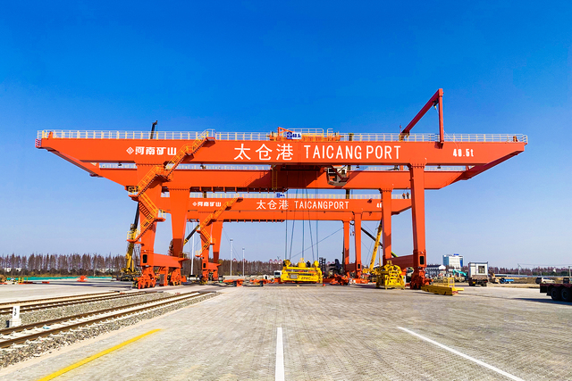 近日,從太倉港傳來喜訊,我公司承制的2臺軌道式集裝箱門式起重機順利交付,成為今年以來繼中國鐵路、中鐵一局、東方紅(國際)陸港、錦州港、貴繩集團等重大項目后,河南礦山又一集裝箱門機精品力作。彰顯了河南礦山的創(chuàng)新創(chuàng)造能力日益增強,更為助推太倉港轉(zhuǎn)型升級,助力其打造國家物流樞紐發(fā)揮重要作用。