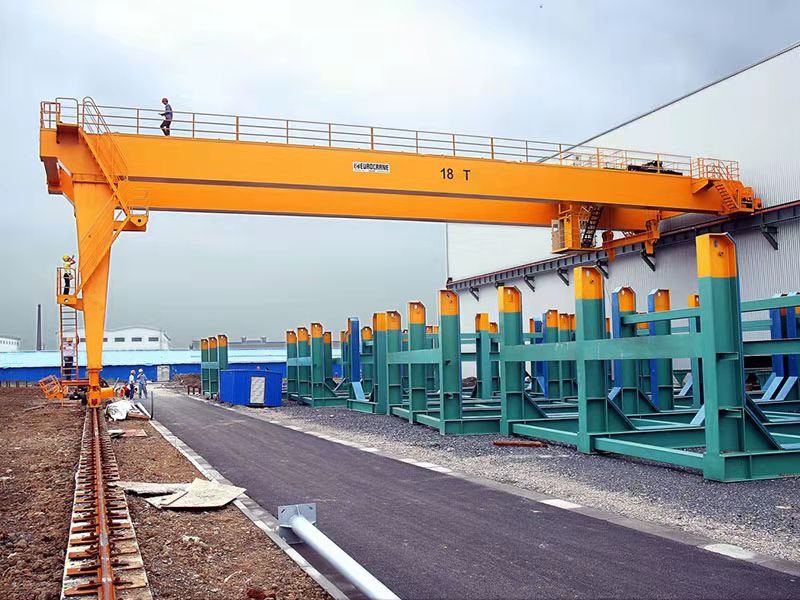 結構形式與MG型起重機基本相同,一側有支腿,在地面軌道上運行;另一側無支腿,在廠房上部的軌道上運行。